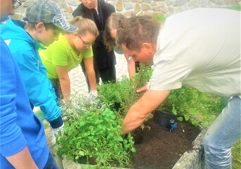 Truhlíky u ZŠ osázeli žáci bylinkami